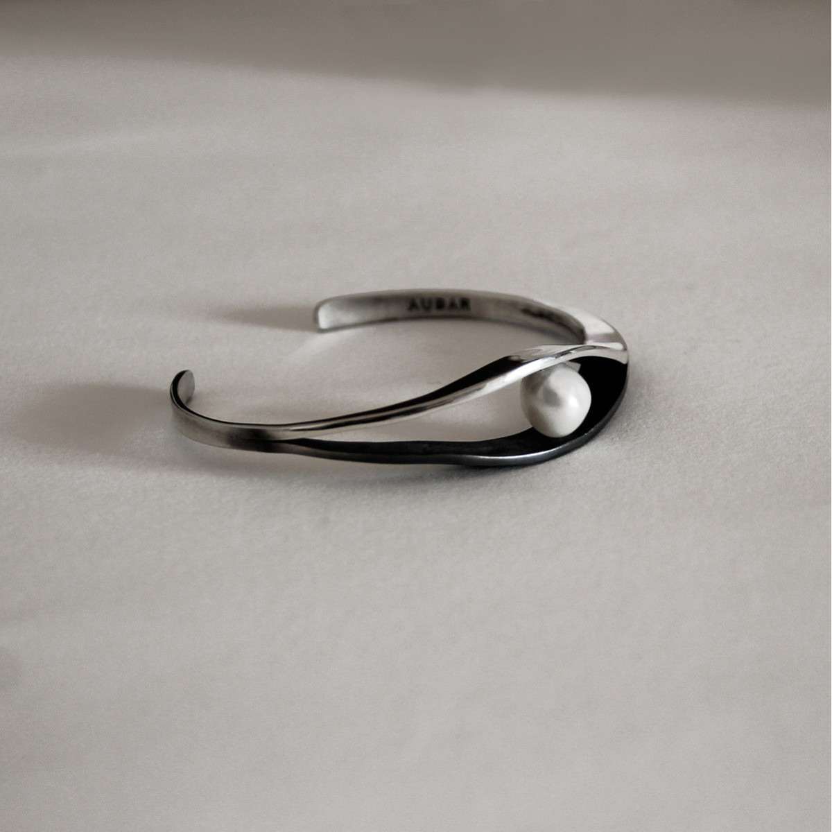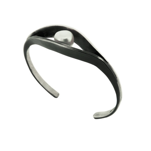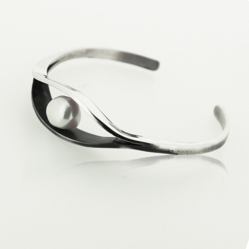 Esclava de plata blanca 925 combinada con plata oxidada y una perla
